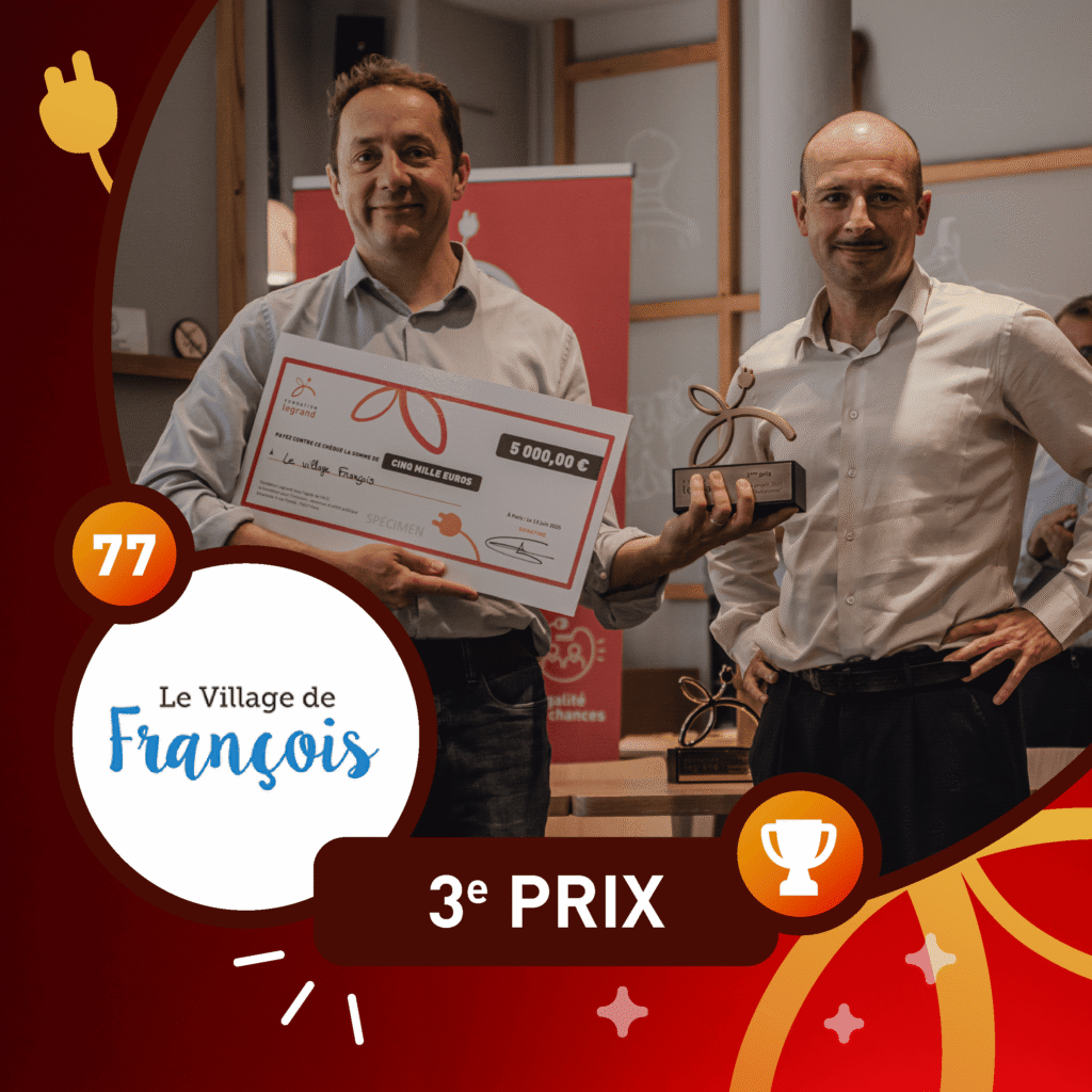 Le troisième prix est décerné à Le Village de François par Aurélien Poisson, Directeur Legrand Care. Le projet “Accueillir des personnes âgées dans un lieu de vie partagé” concerne l’aménagement d’un studio au sein d’un habitat partagé destiné aux personnes âgées isolées, porté par le village de François.